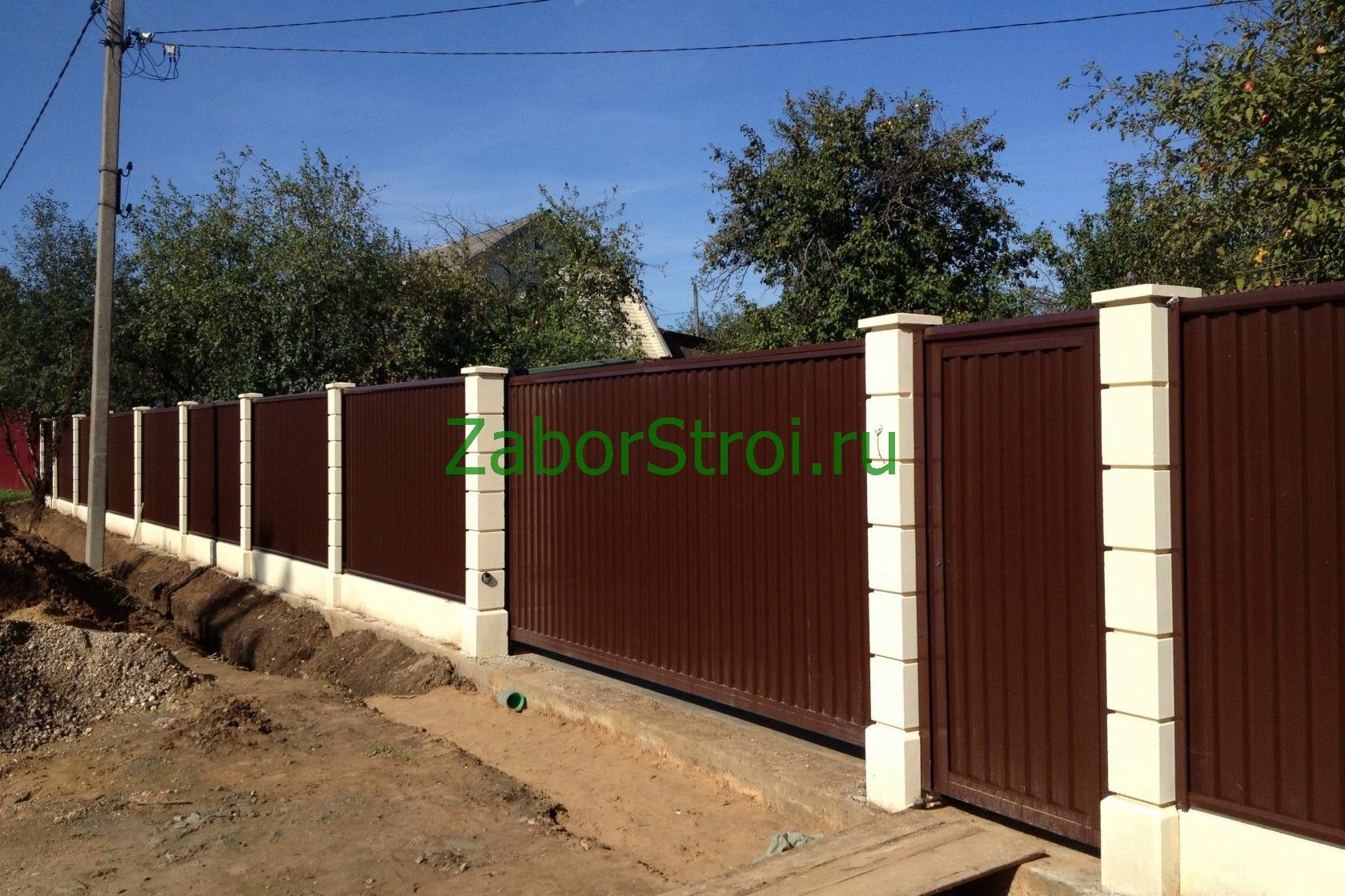 Откатные ворота из профнастила на винтовых сваях (цена на бетонном основании +20000р)